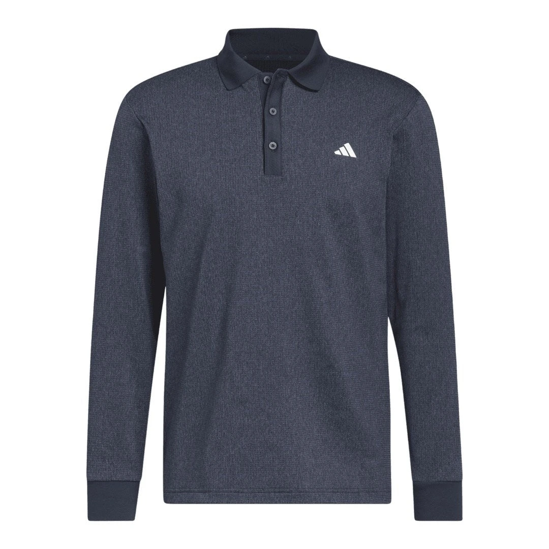 adidas Long Sleeve Heather Golf Polo Shirt HZ0426 | Collegiate Navy