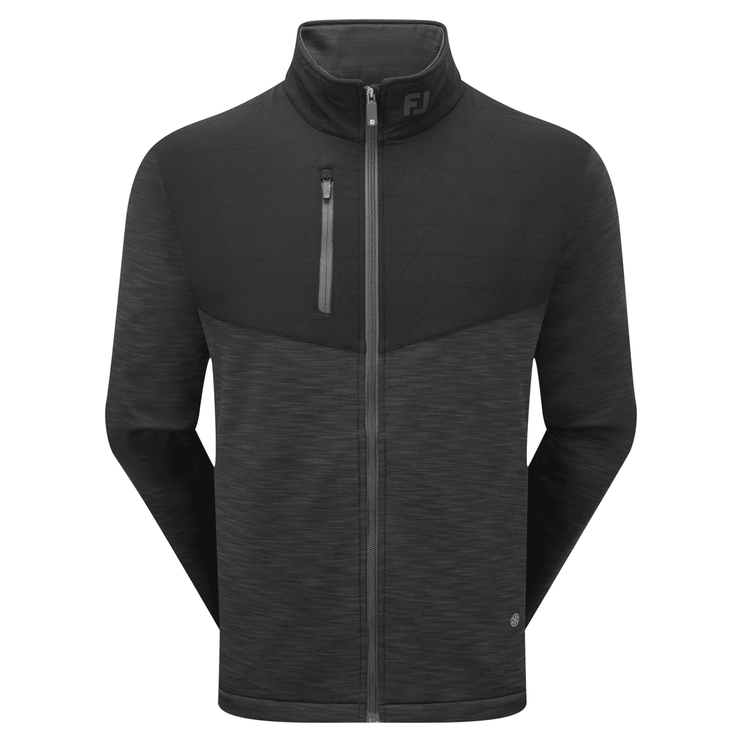 Heat up your game in the FootJoy ThermoSeries Hybrid Golf Jacket. The brushed back jacquard knit body and sleeves, lightweight woven quilted on front panels and collar, adjustable collar, and open hand pockets are engineered to adapt as the weather changes so you can look, feel, and play your best in any conditions.