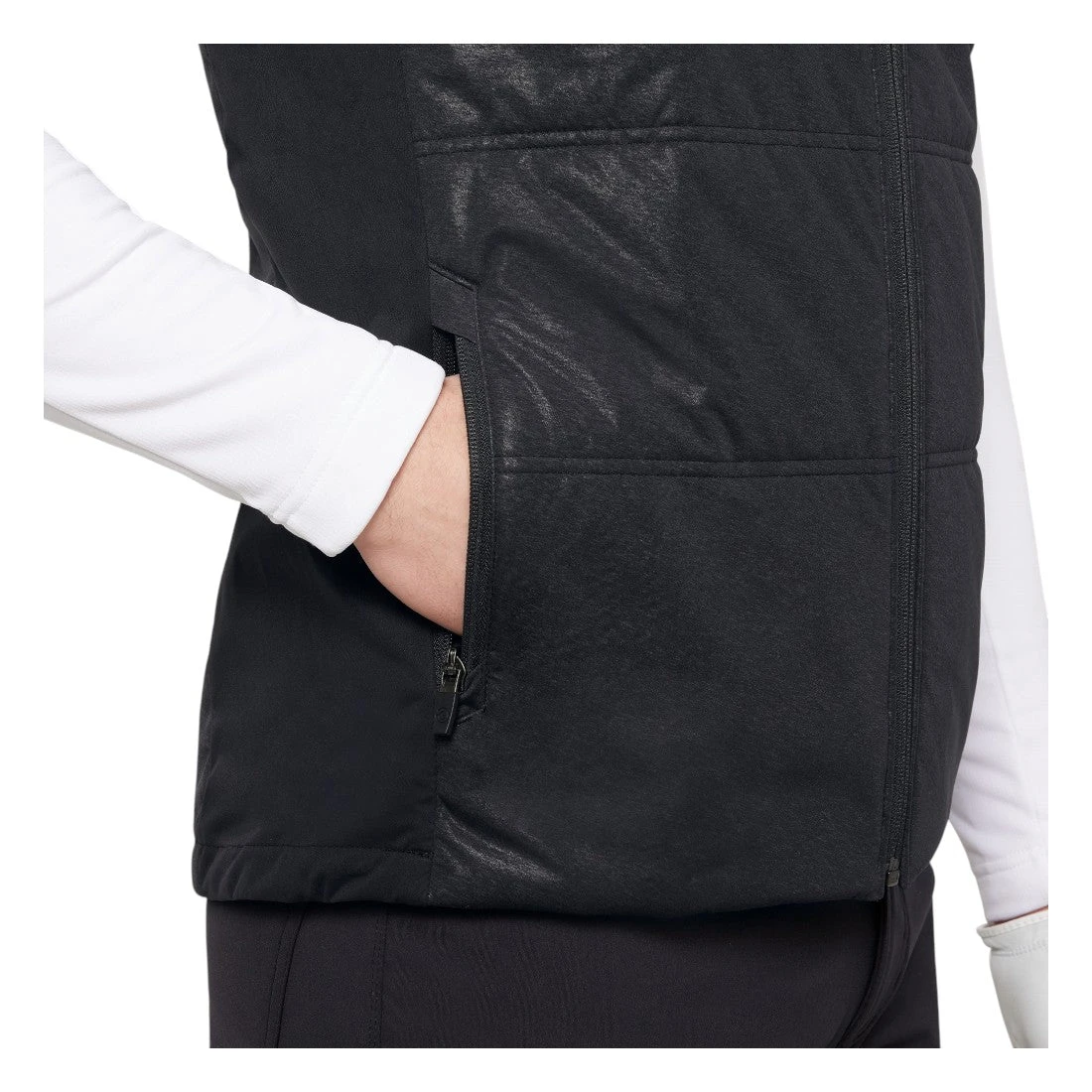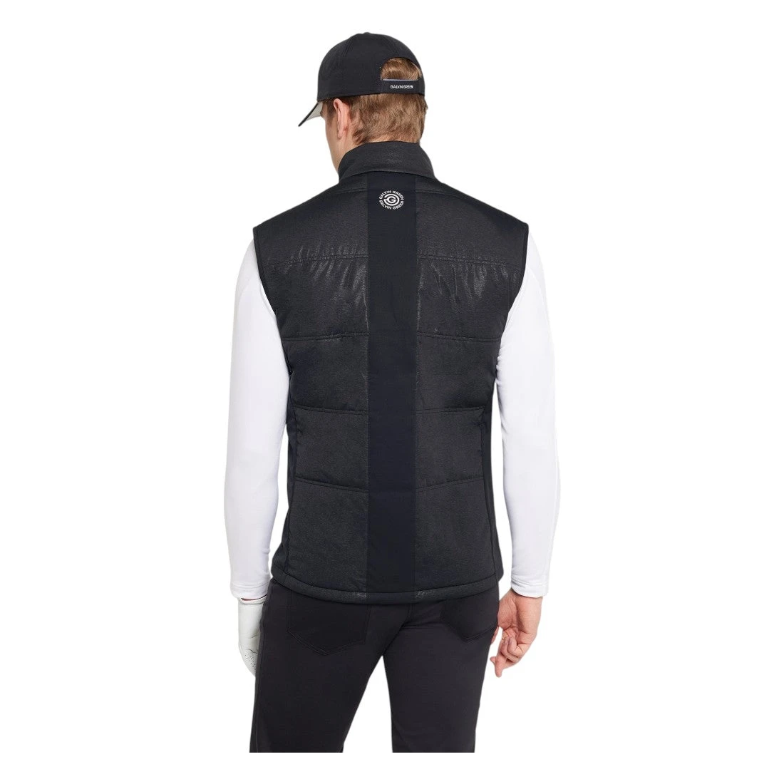 The Galvin Green Lennox Interface-1 Golf Wind Vest offers expert-level temperature regulation, ideal for layering under a rain jacket or wearing alone on cooler days. Made from 100% recycled polyester with INTERFACE-1™ technology and a PET membrane, it provides windproof, water-repellent protection combined with excellent breathability. Thermore® insulation and stretch fabric ensure warmth and comfort, while features like front pockets, piping along the zipper, an elastic drawstring hem, and repositioned side seams deliver a tailored fit and reliable Warming Effect #3 performance throughout your round.