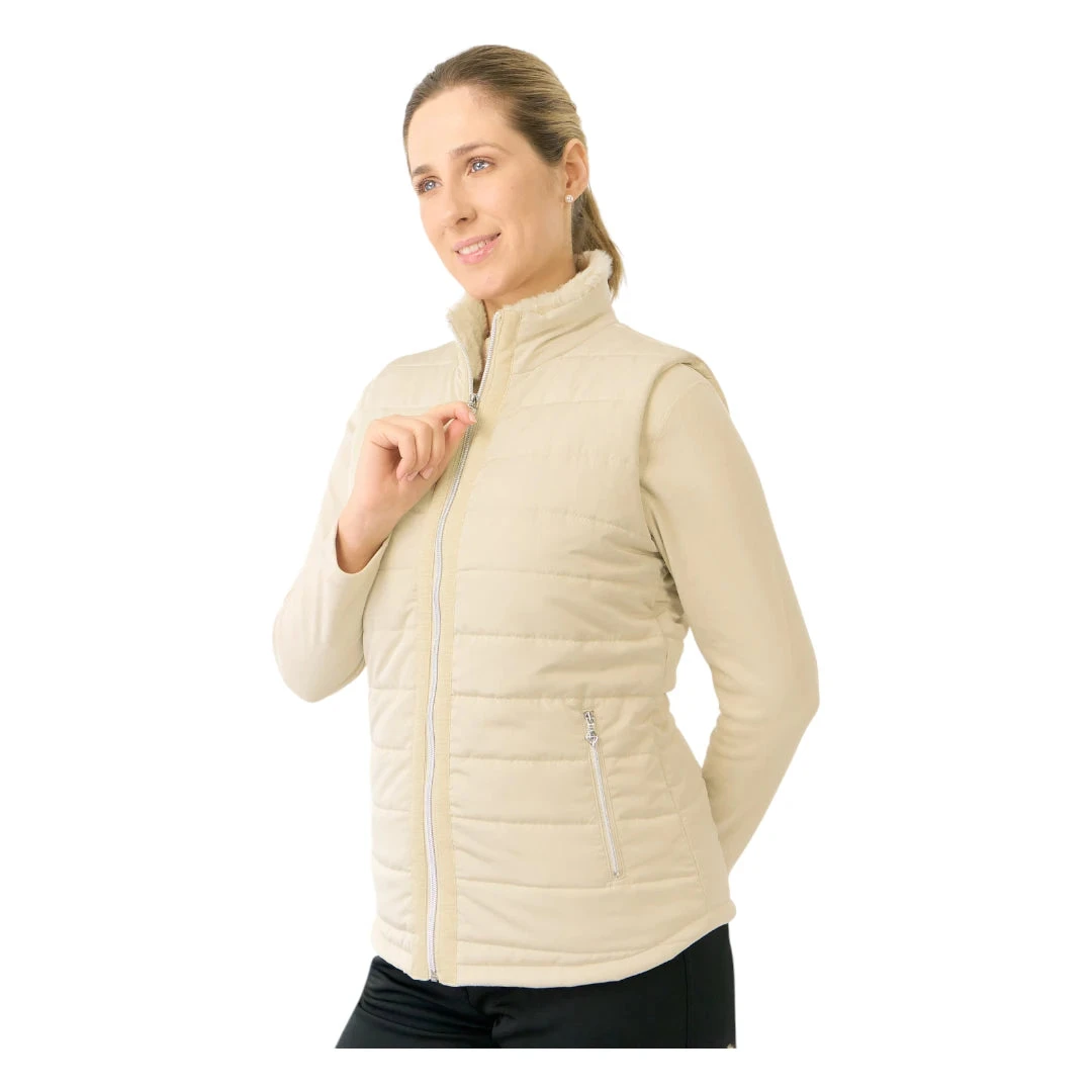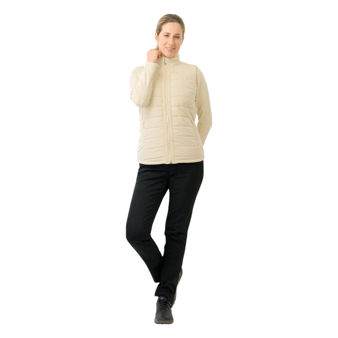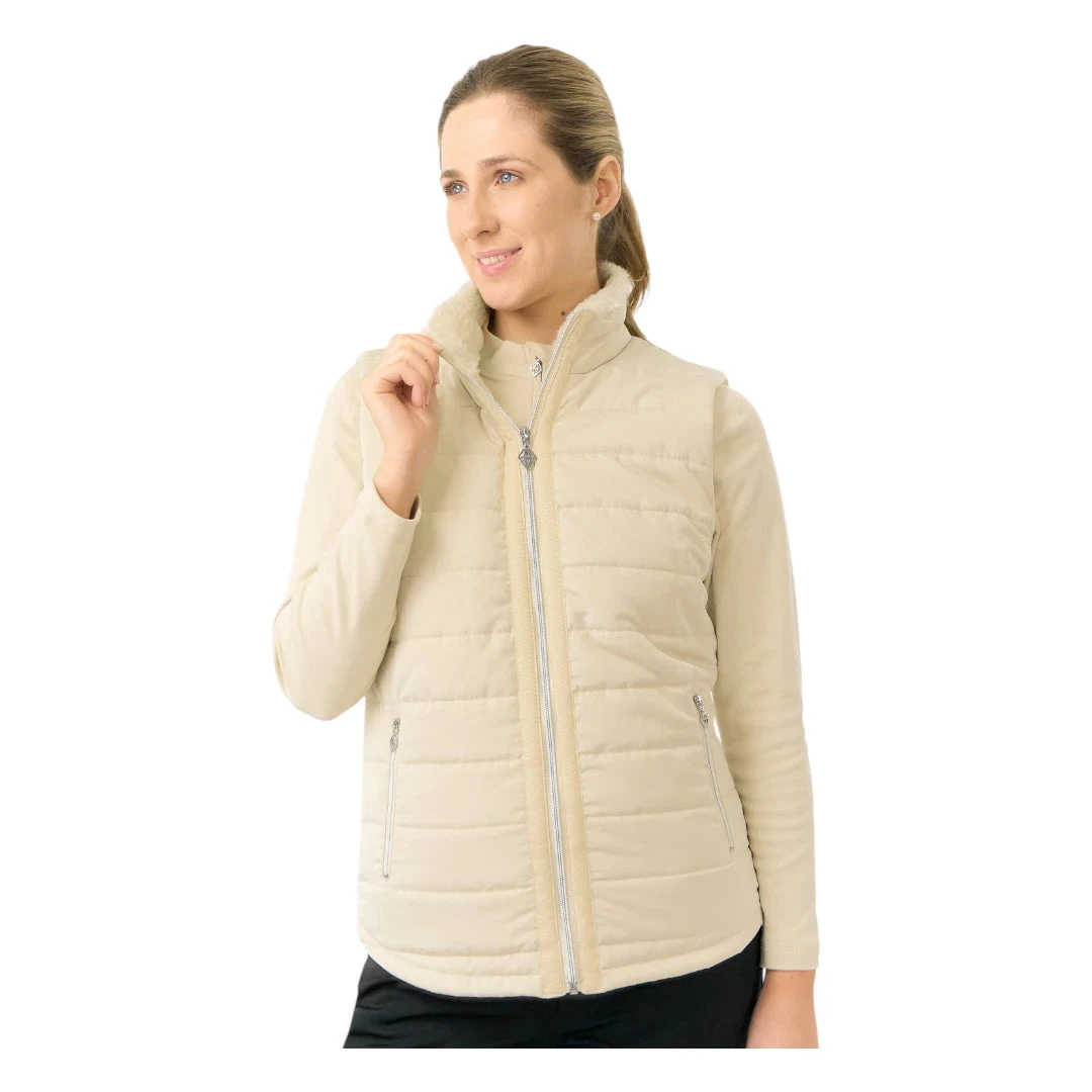 The Pure Golf Ladies Hemisphere Faux Fur Collar Golf Gilet combines winter-weight insulation with a lightweight design that maintains excellent freedom of movement. Featuring a soft faux fur collar for added warmth and comfort, this regular-fit gilet includes quilted detailing that flatters your silhouette. Quick-dry polyester construction ensures practicality, while two spacious front pockets provide convenient storage. Ribbon detailing along each side of the zipper adds a subtle style touch, making this gilet a smart choice for staying warm and unfettered on the course.